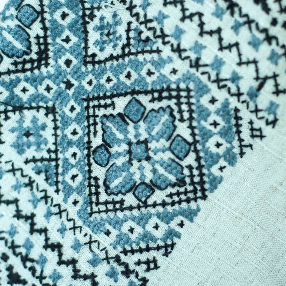 Linen dress from Humor with blue hand-made embroidery. A modern version of the Romanian blouse that can be worn on special occasions, but also as a casual dress.